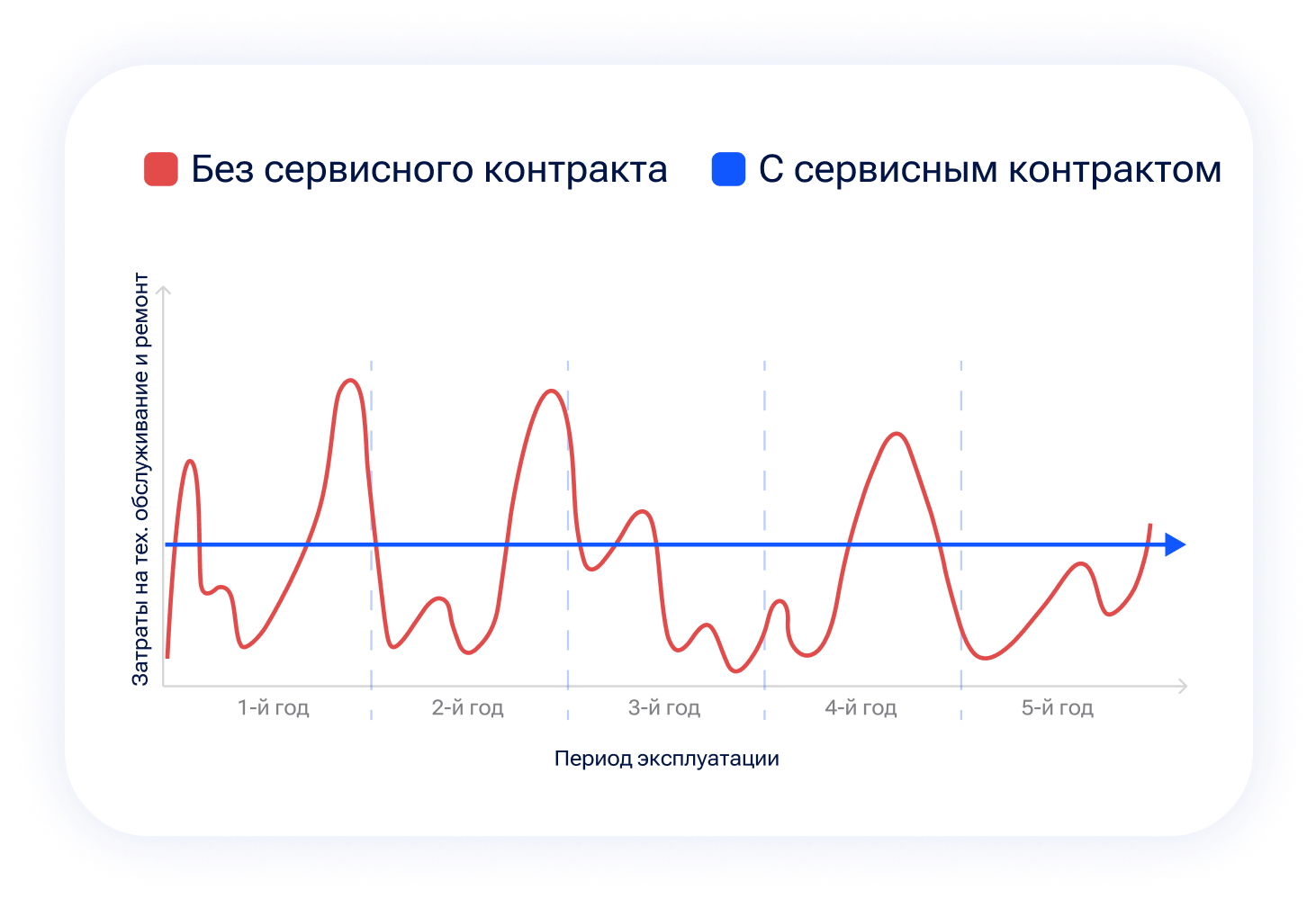 *Расчёт экономии выполнен на основе изменения стоимости услуг обслуживания и оригинальных запасных частей за период 2020-2023 год, исходя из среднего срока действия Сервисного контракта 3 года. Указана экономия за весь срок действия Сервисного контракта.