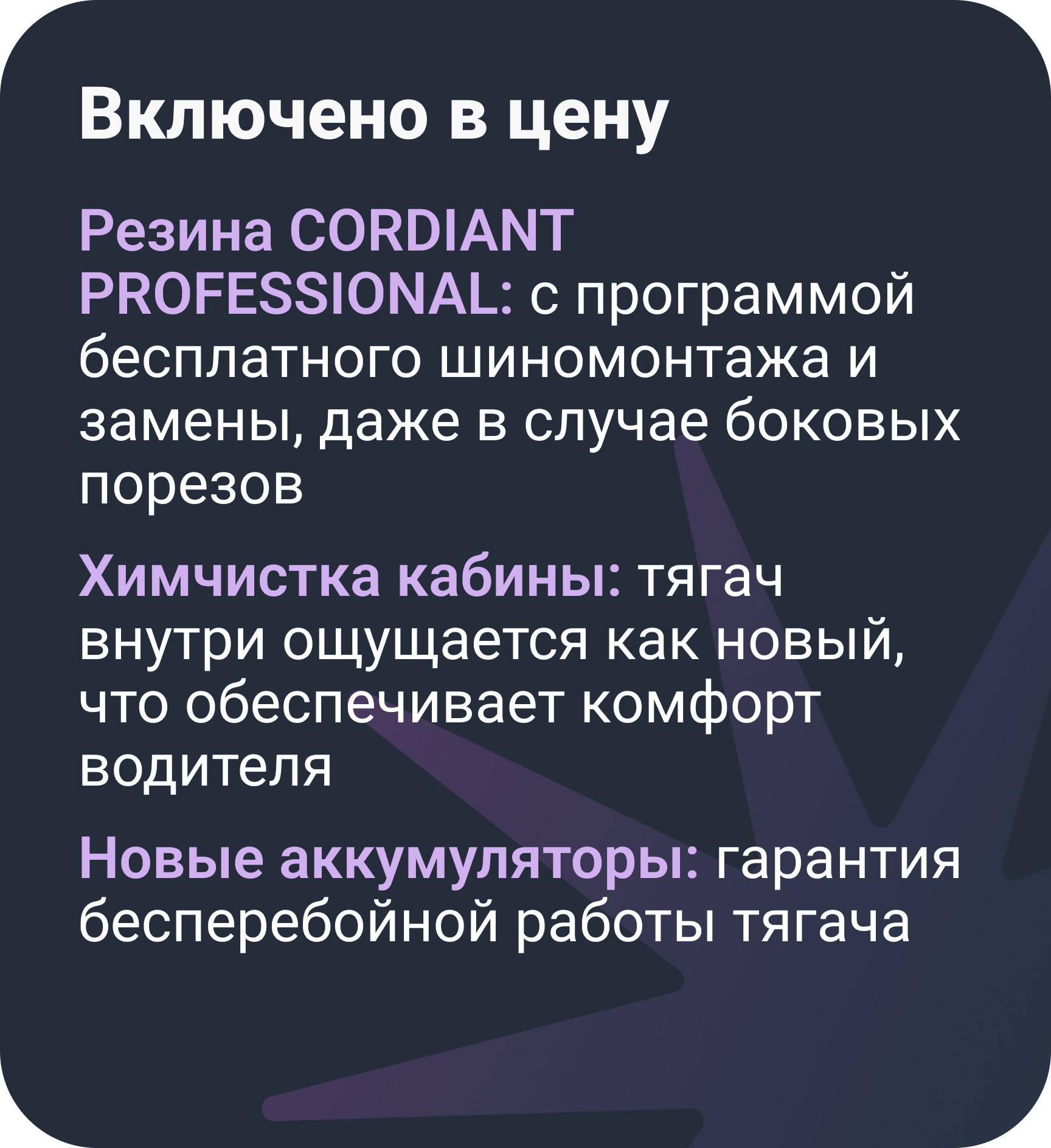Получаете полностью готовый к работе грузовик, доставленный в нужное место и с подменой в случае поломок